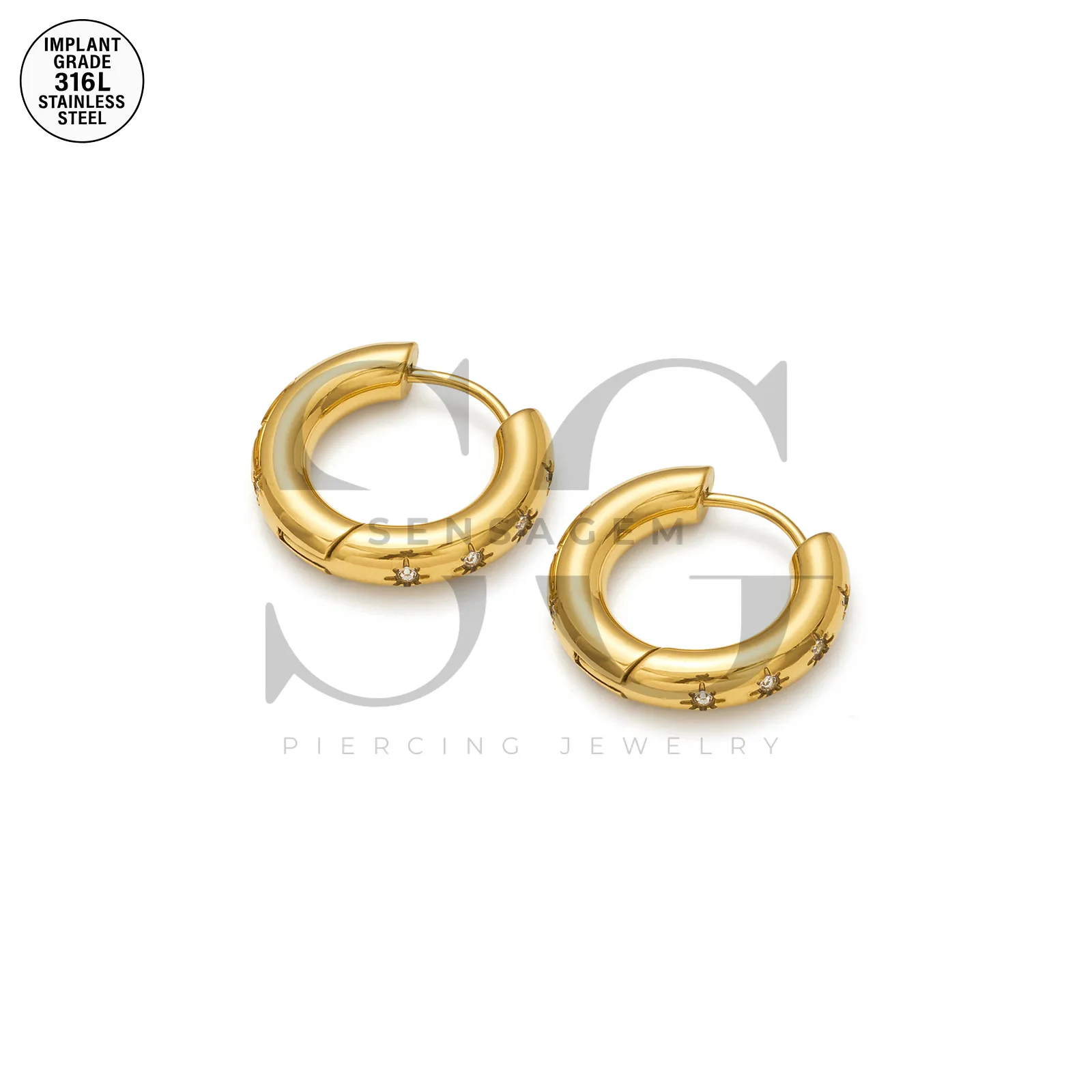 SG9089 316L Stainless Steel Gold Star Dangle Huggie Hoops