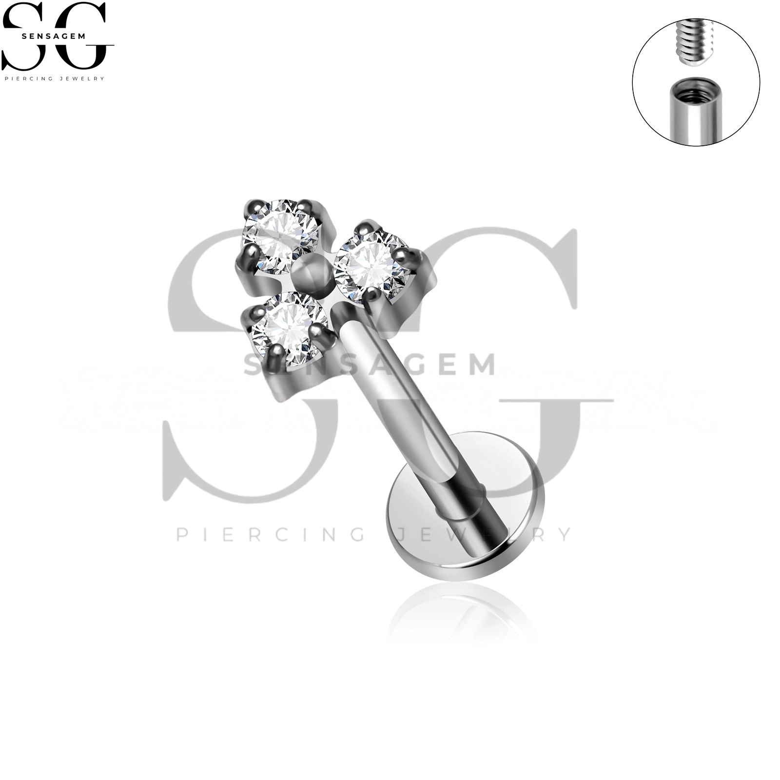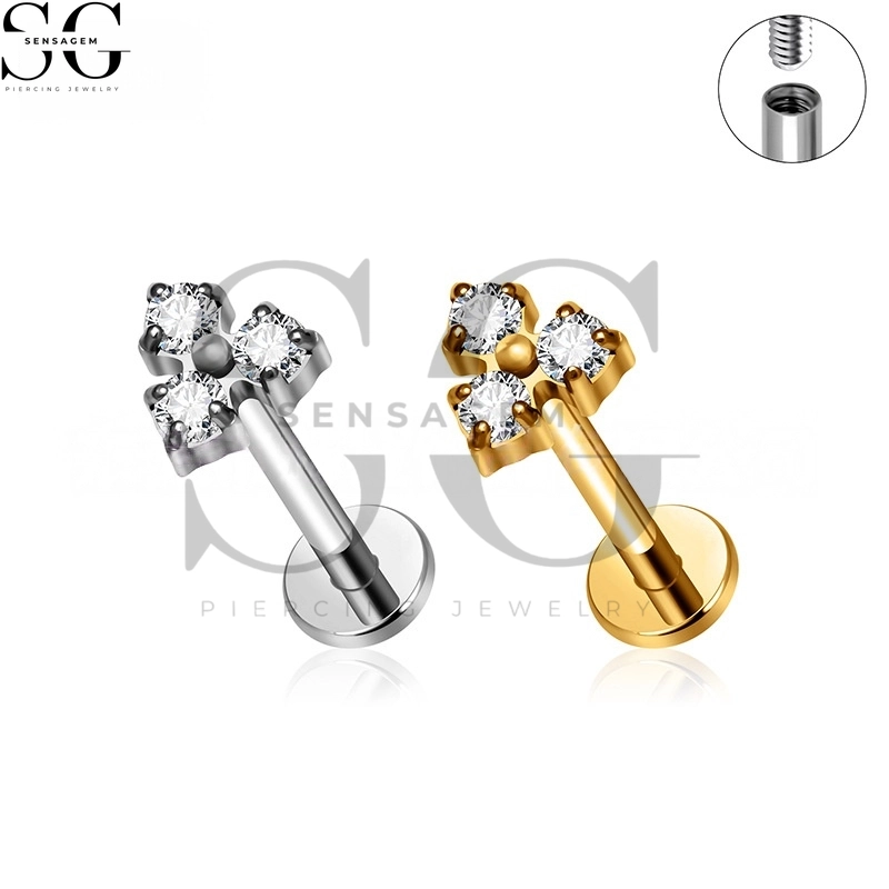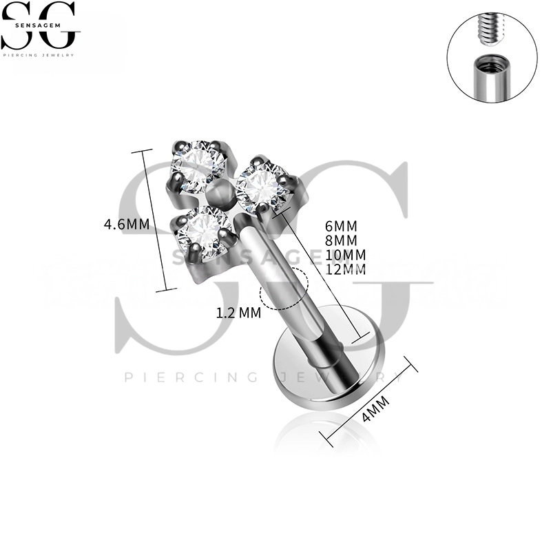 SGYS1005 F-136 Piercing Labret de titanio con gemas Trinity en racimo