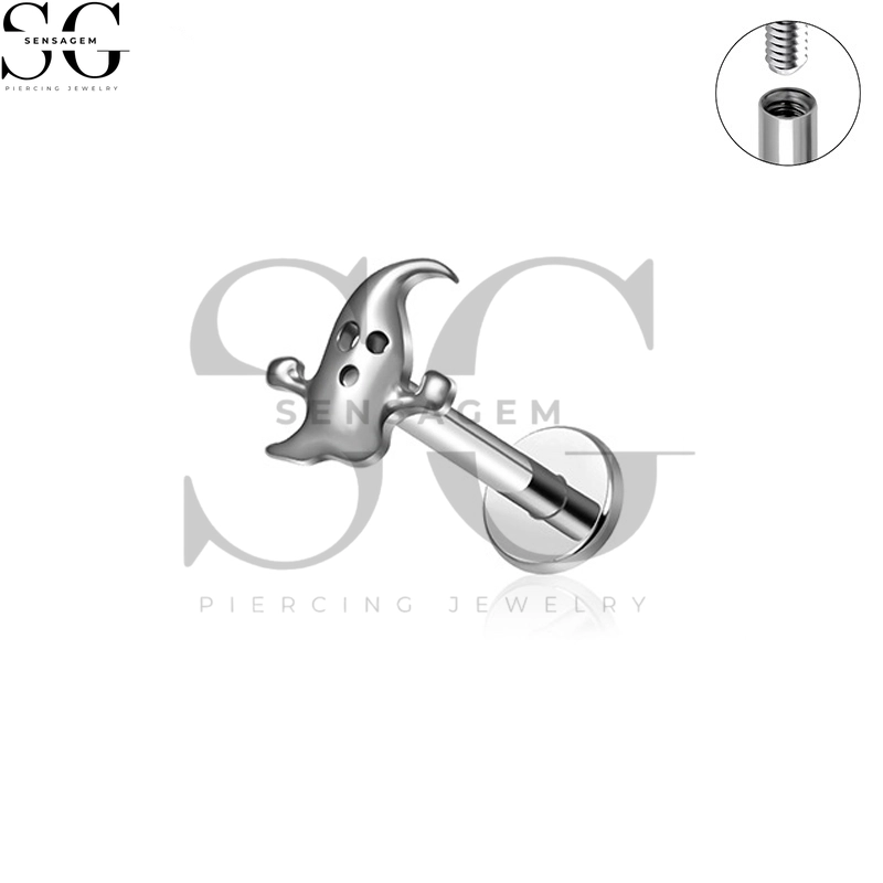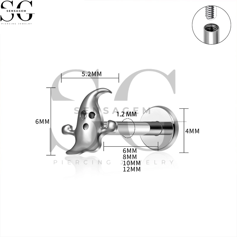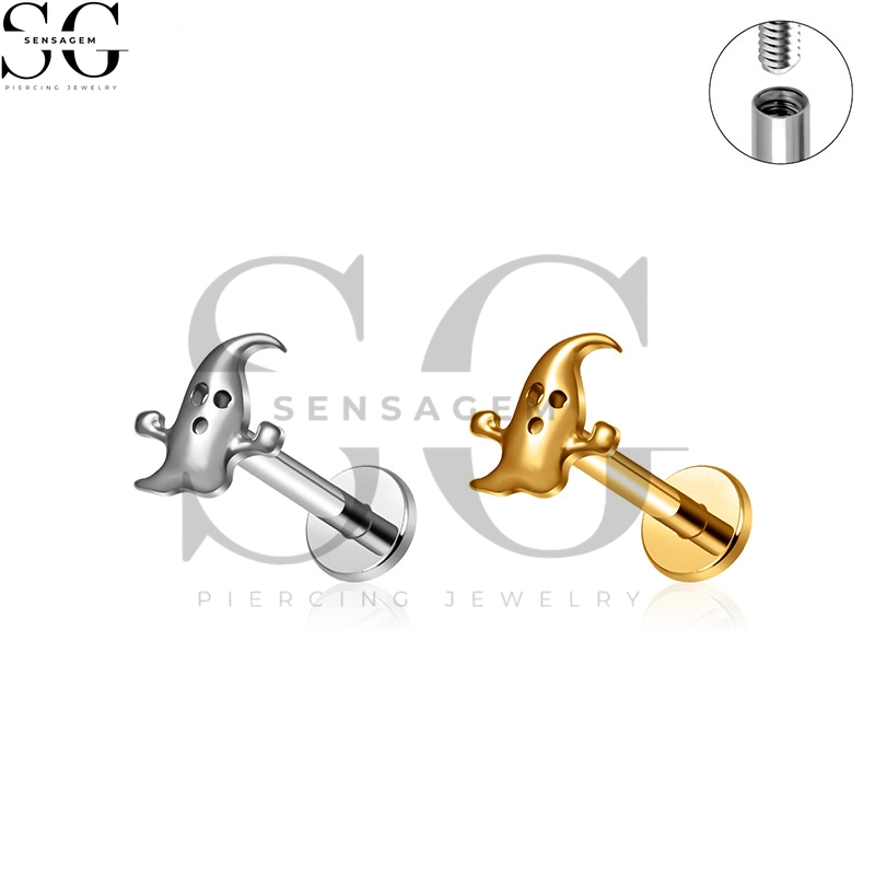 SG4468 Wholesale F136 Titanium Halloween Ghost Labret Stud Internally Threaded Lip Piercing Jewelry