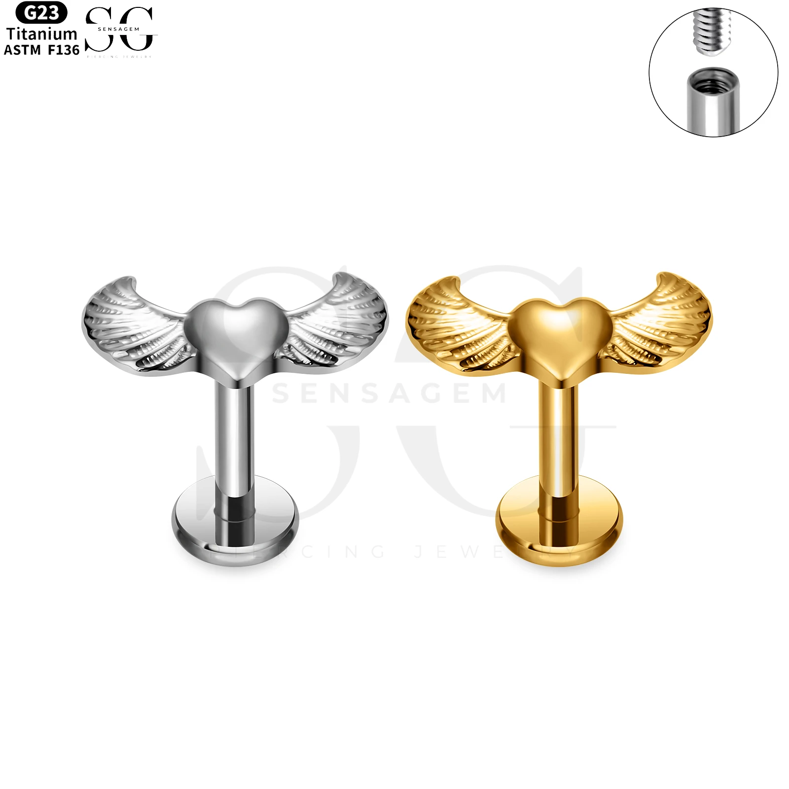 SG4170 Angel Wing Heart Titanium Labret – Internally Threaded