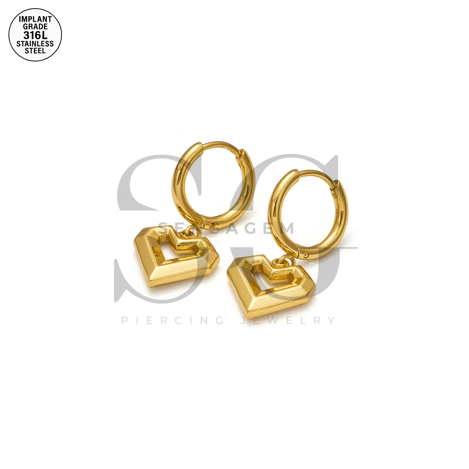 SG9084 Huggie Hoop pendenti a forma di cuore dorato in acciaio inossidabile 316L