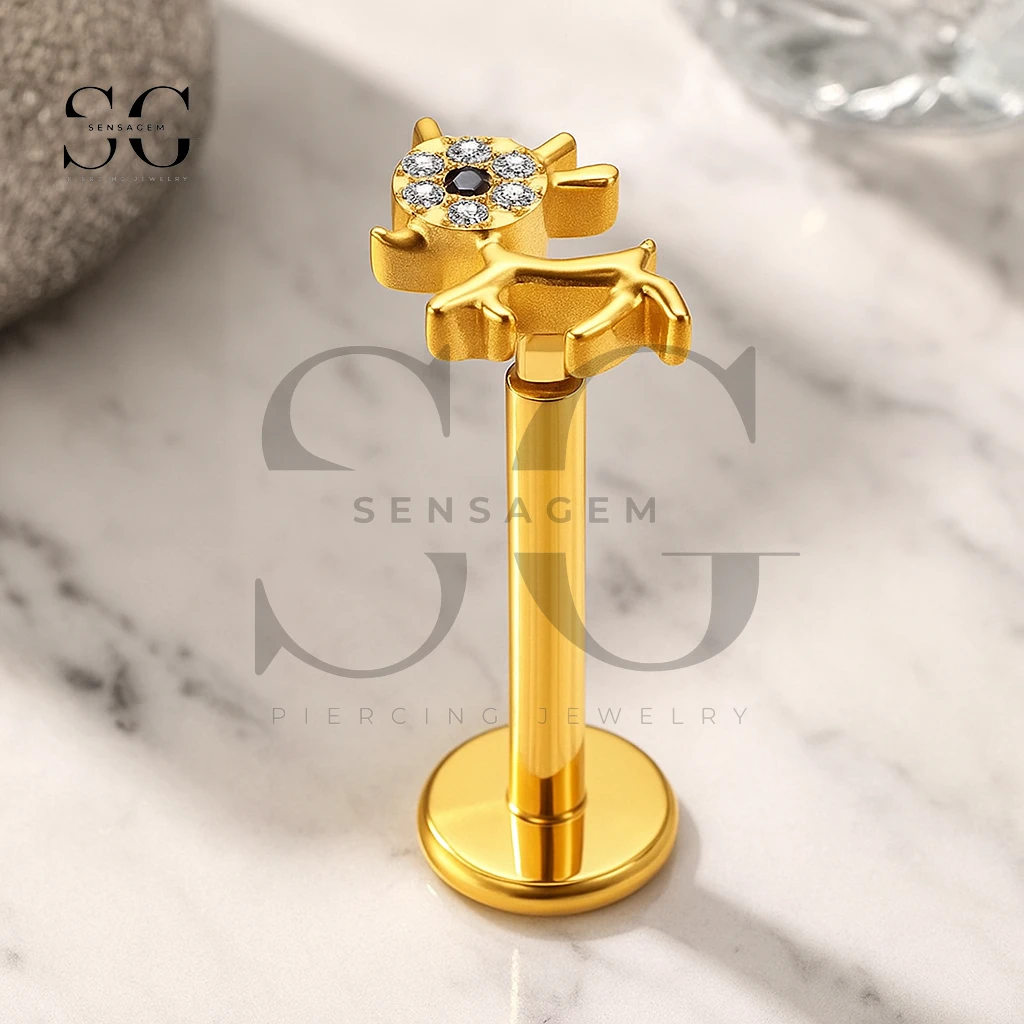 SG4034 Perno Labret con silhouette di gatto con filettatura interna in titanio