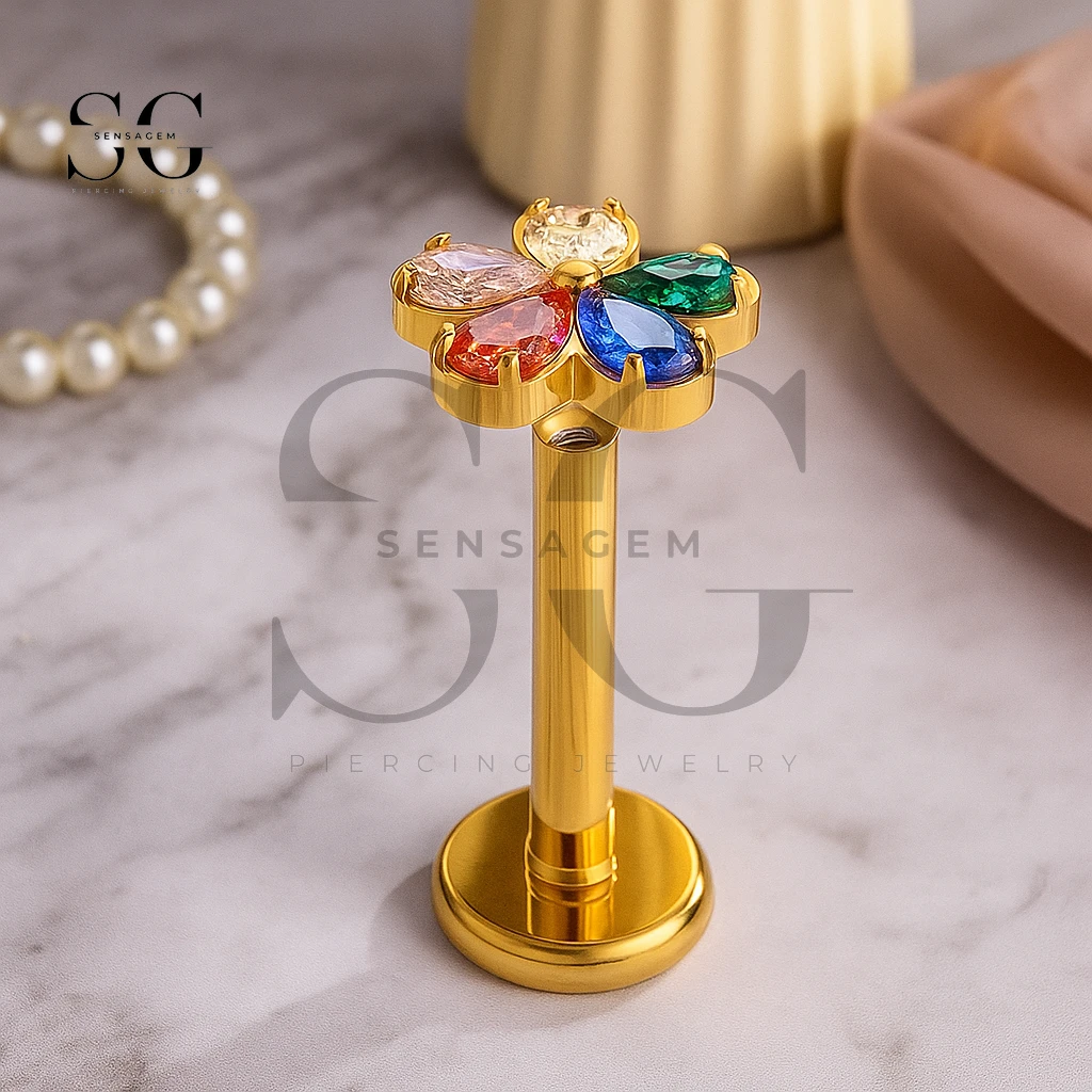 SG4033 Trilogy Cluster multicolore in titanio con filettatura interna per labret
