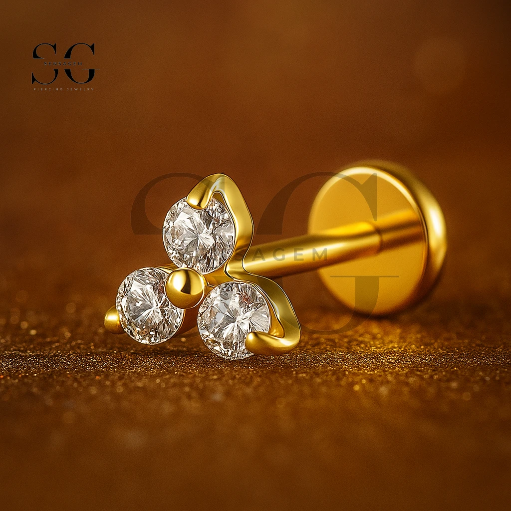 SGYS1005 F-136 Titanio Trinity Gem Cluster Labret Piercing