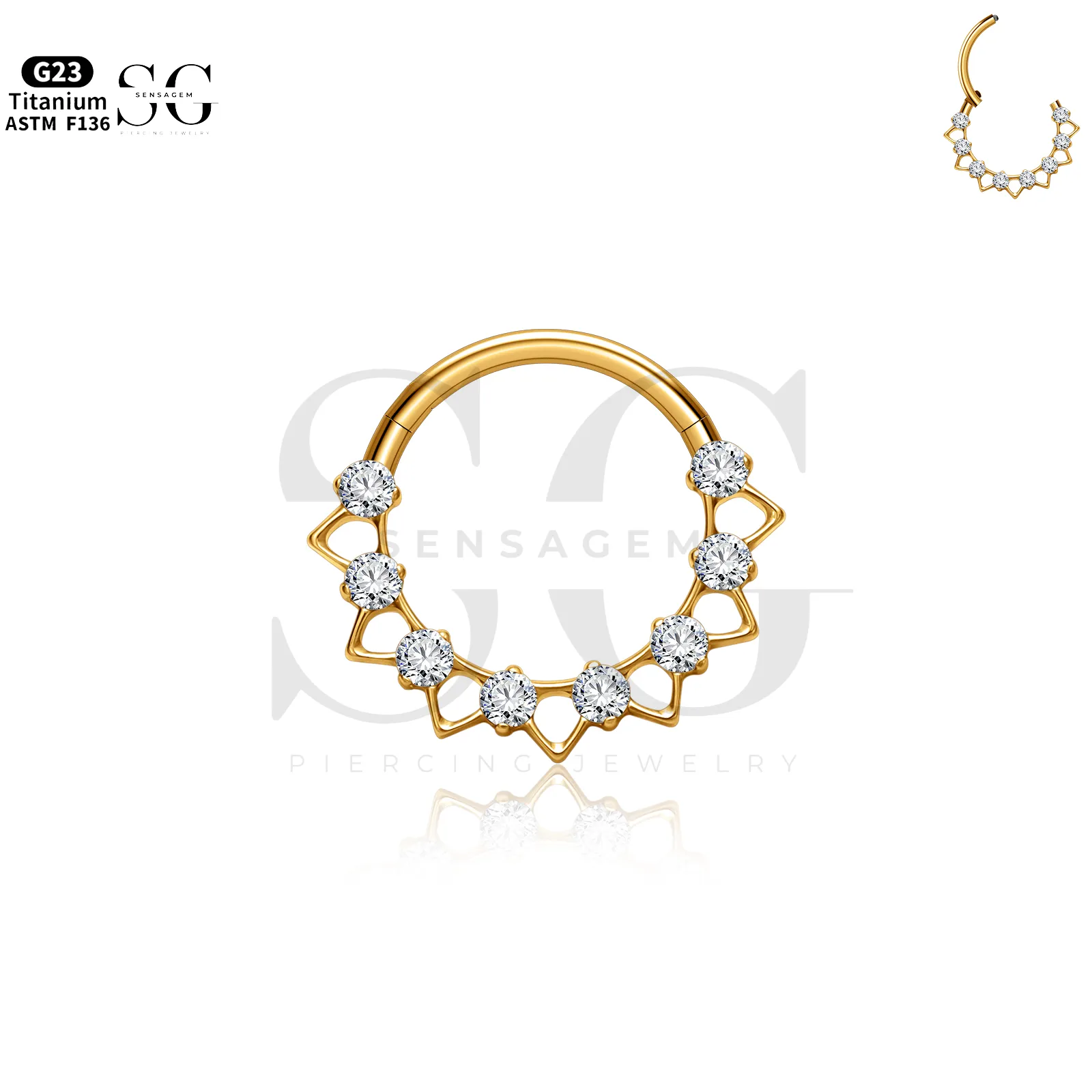 SG3029 PVD Double Side Bar Titanium Hinged Segment Ring With Zircon