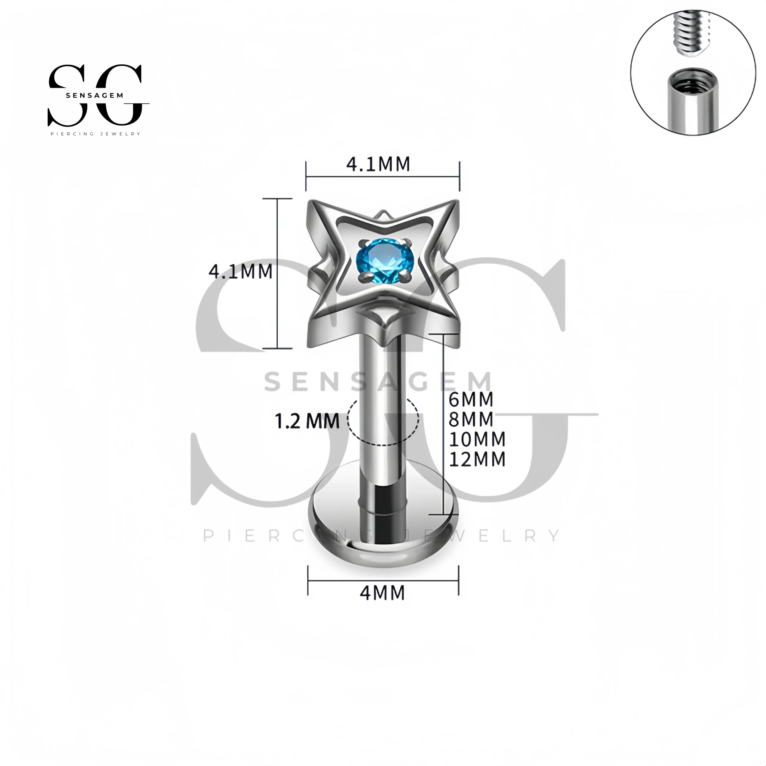 SG4397 Titanium Star Labret Stud Lip Piercing with Gem – Internally Threaded