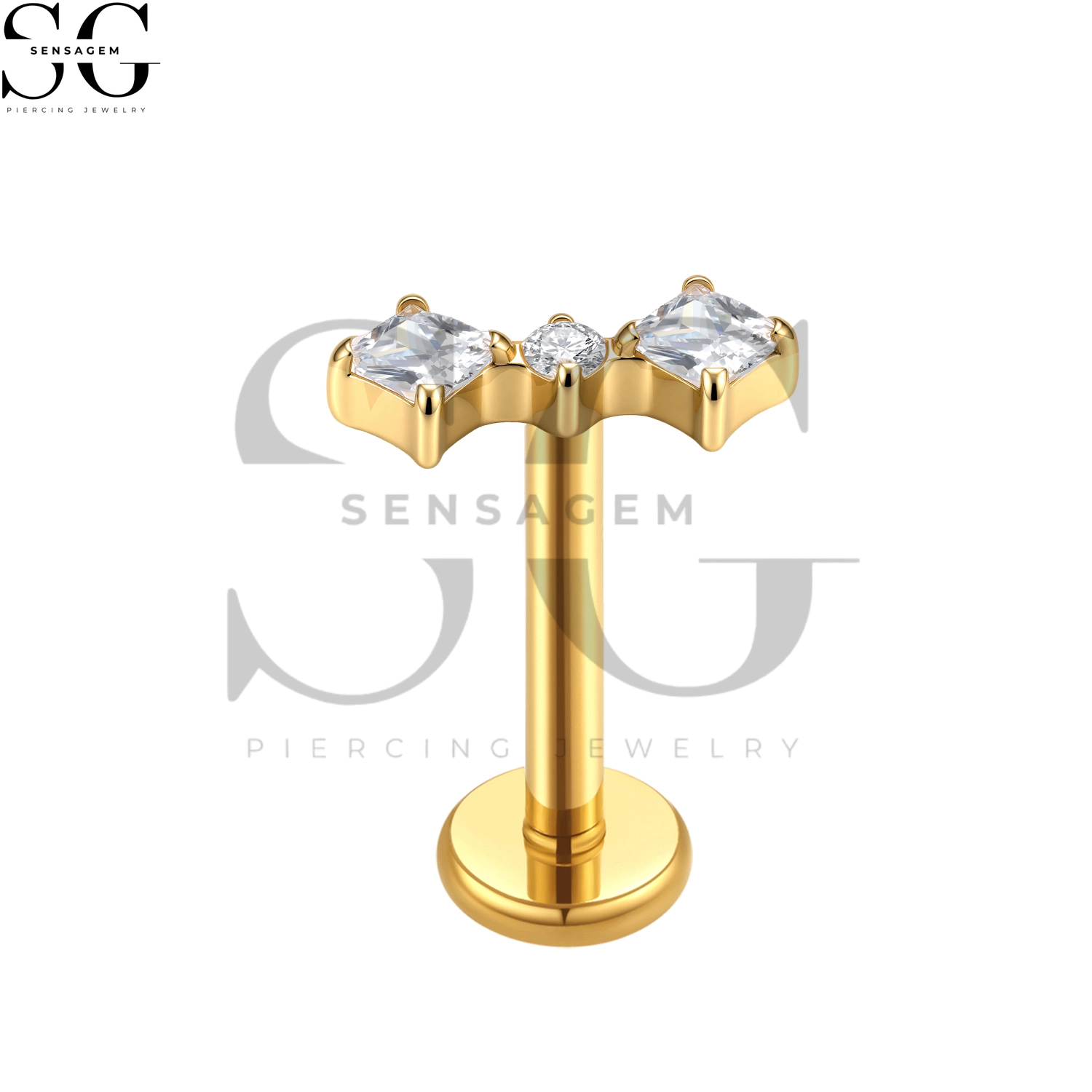 SGYS1261 F136 Titanium Baguette and Round CZ Labret Stud Internally Threaded Lip Piercing Jewelry