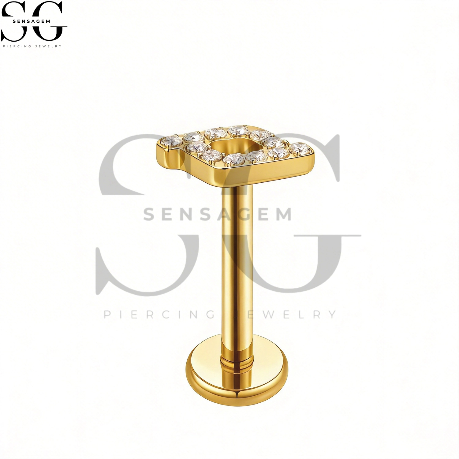 SGYS1274 F-136 Titanium Saturn Planet CZ Labret Stud Internally Threaded Lip Piercing Jewelry