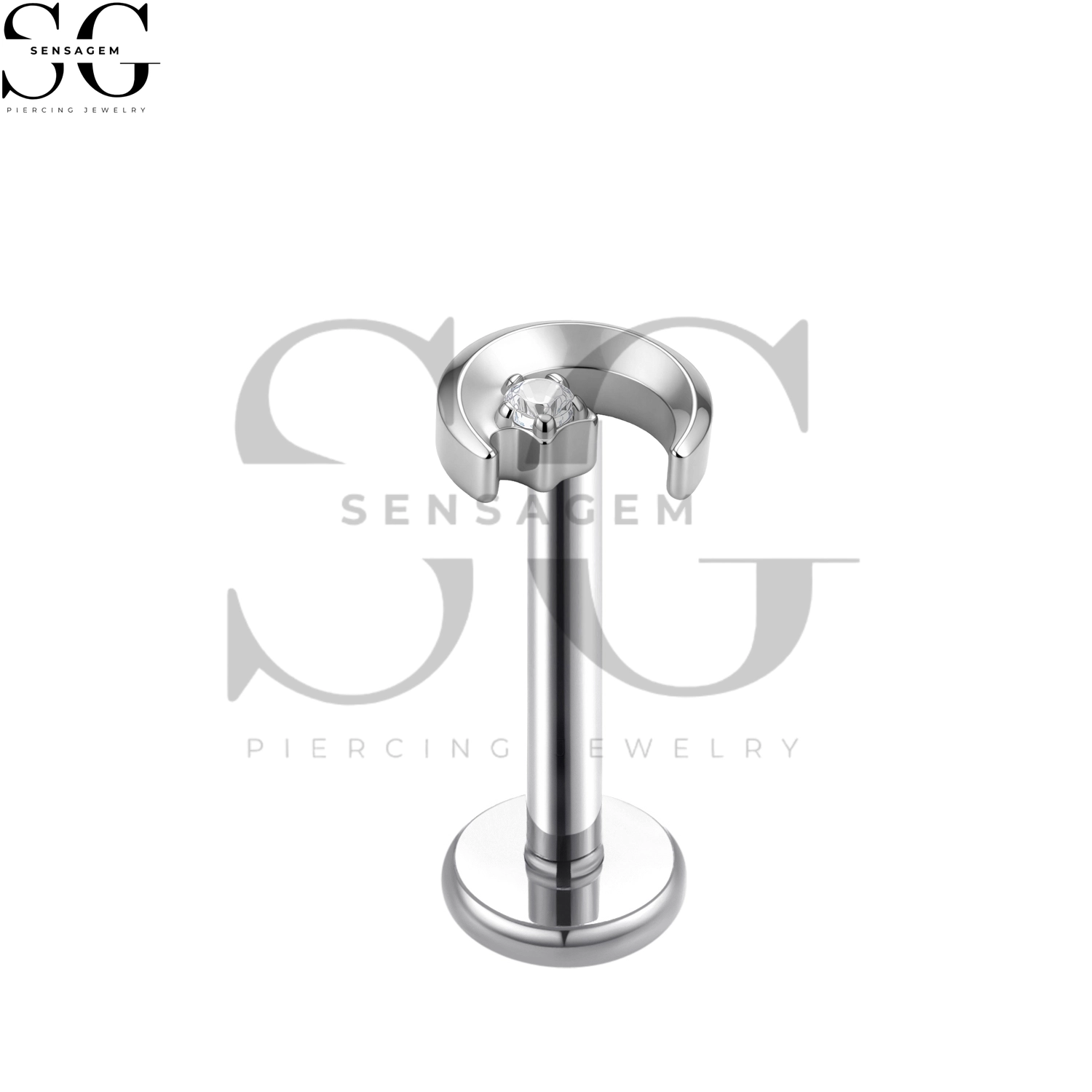 SGYS1276 F-136 Titanium Crescent Moon with Single CZ Labret Stud Internally Threaded Piercing Jewelry