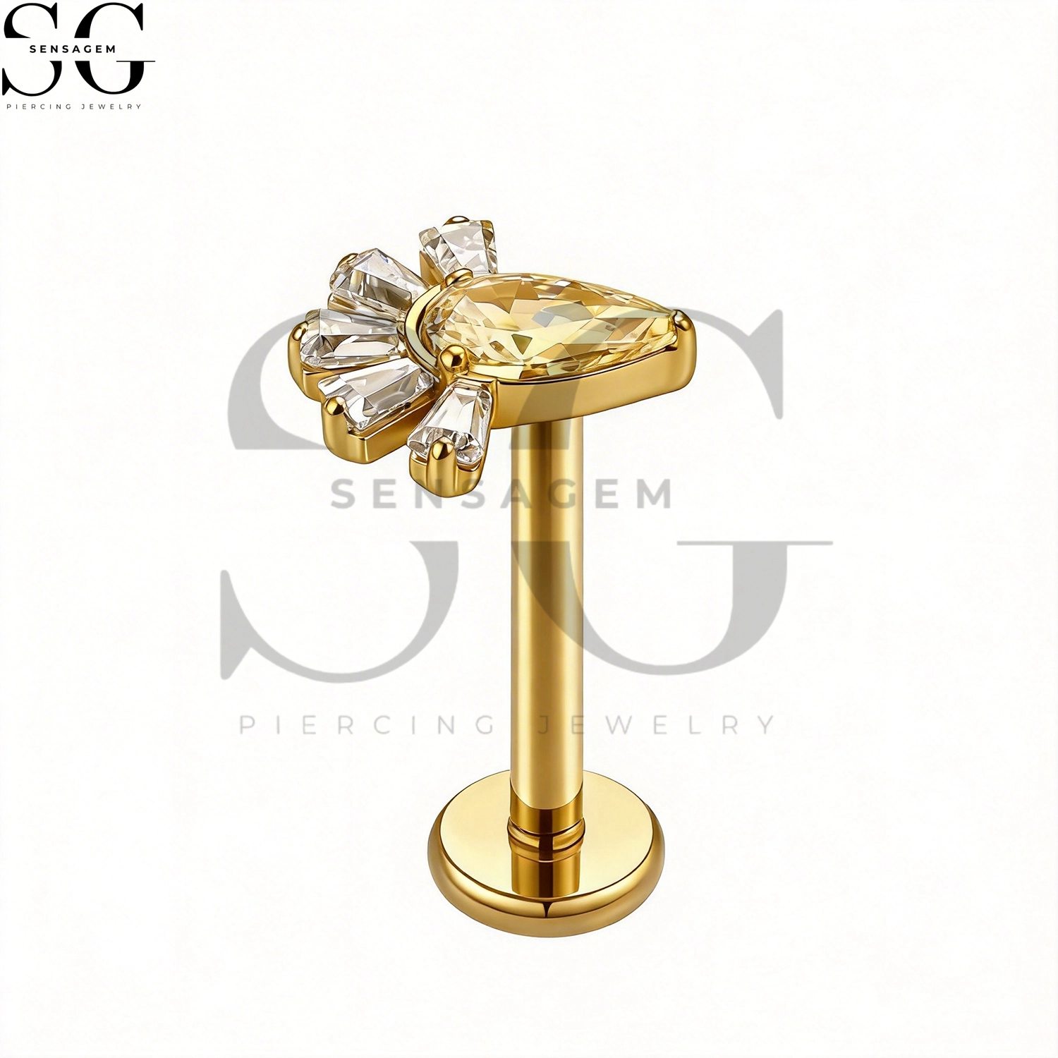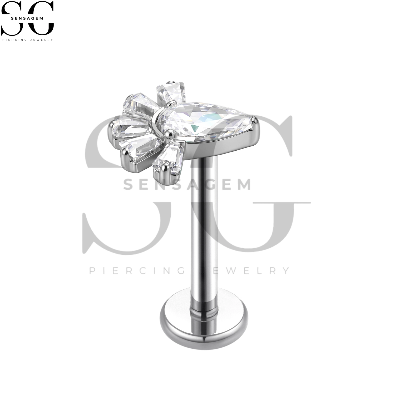 SGYS1283 F136 Titanium Fan-Shaped Pear CZ Labret Stud Internally Threaded Lip Piercing Jewelry