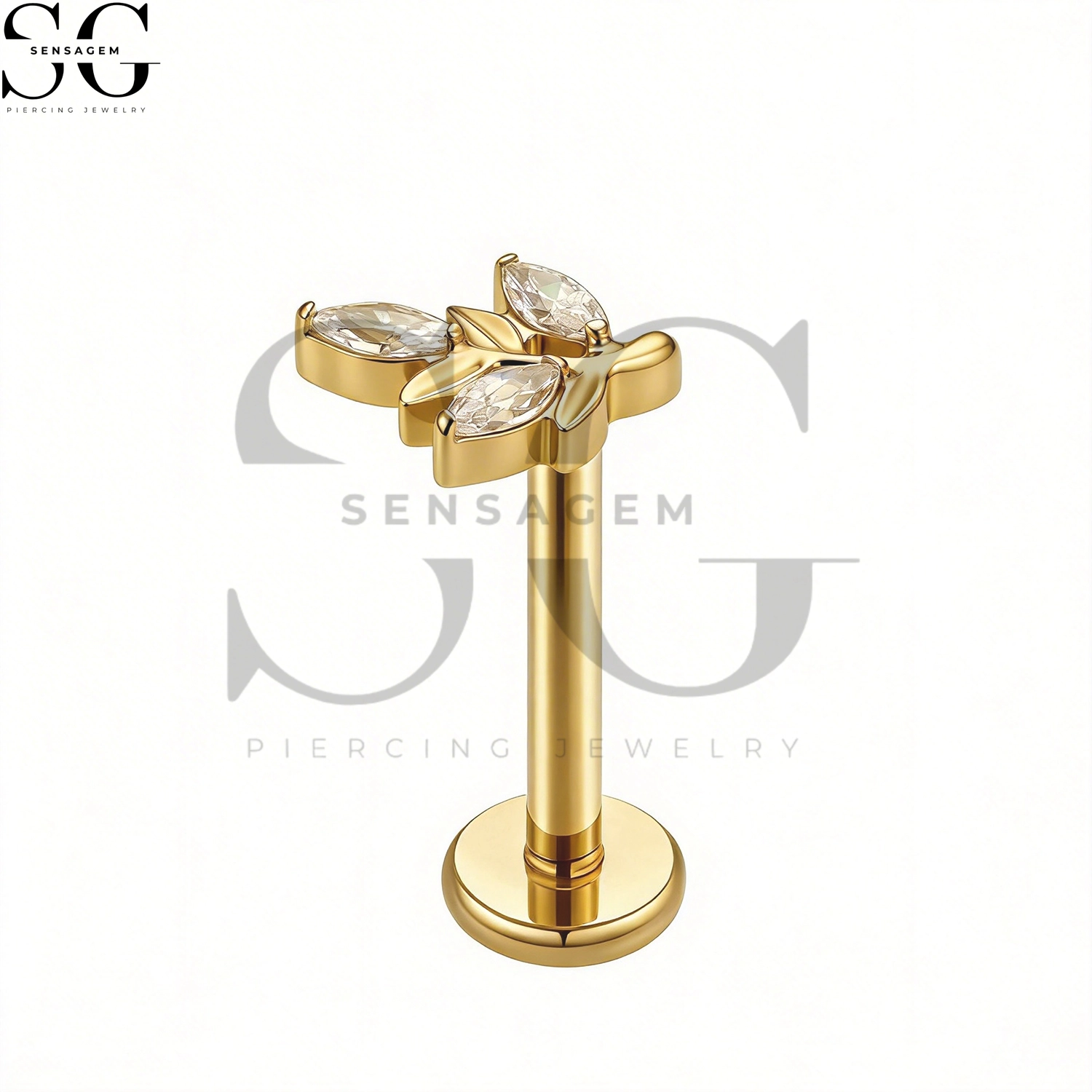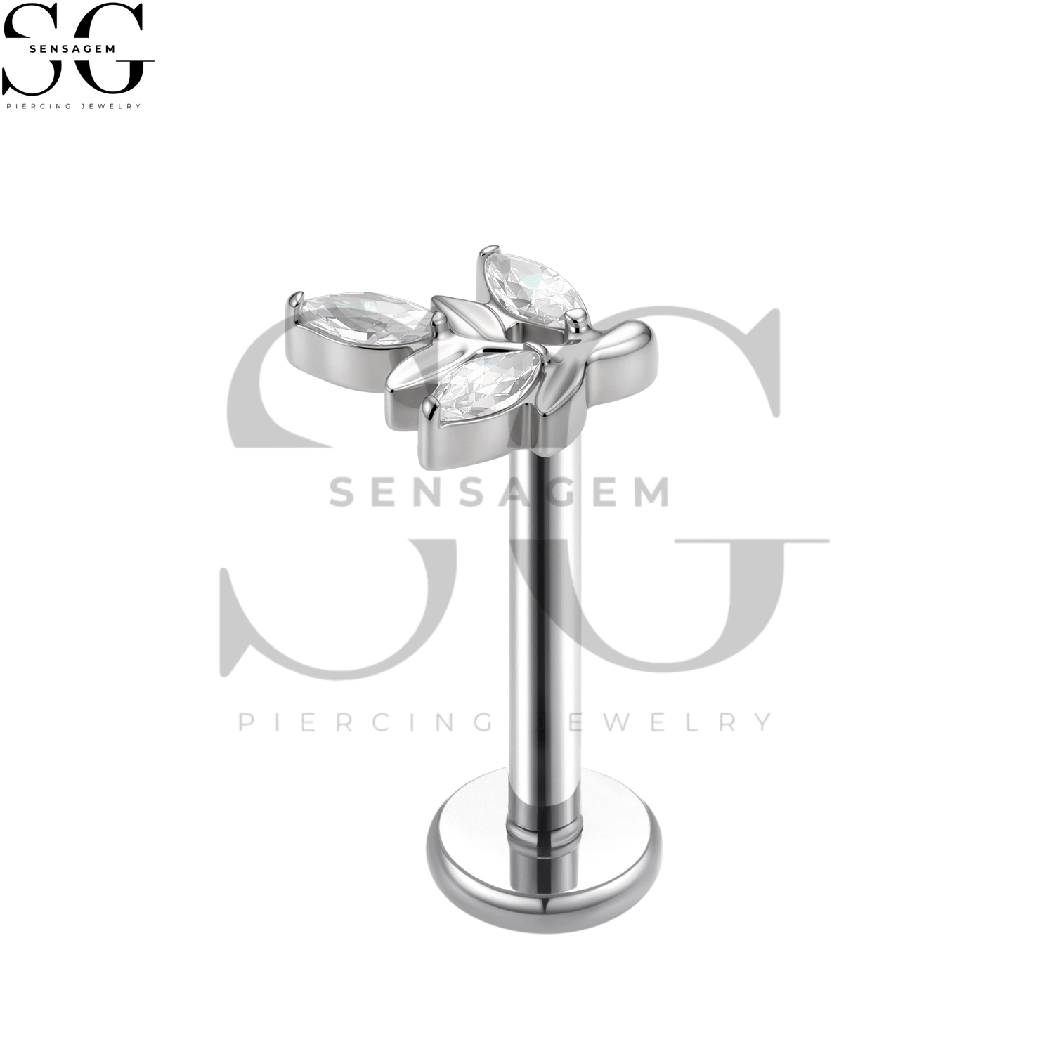 SGYS1005 F-136 Titanium Trinity Gem Cluster Labret-piercing