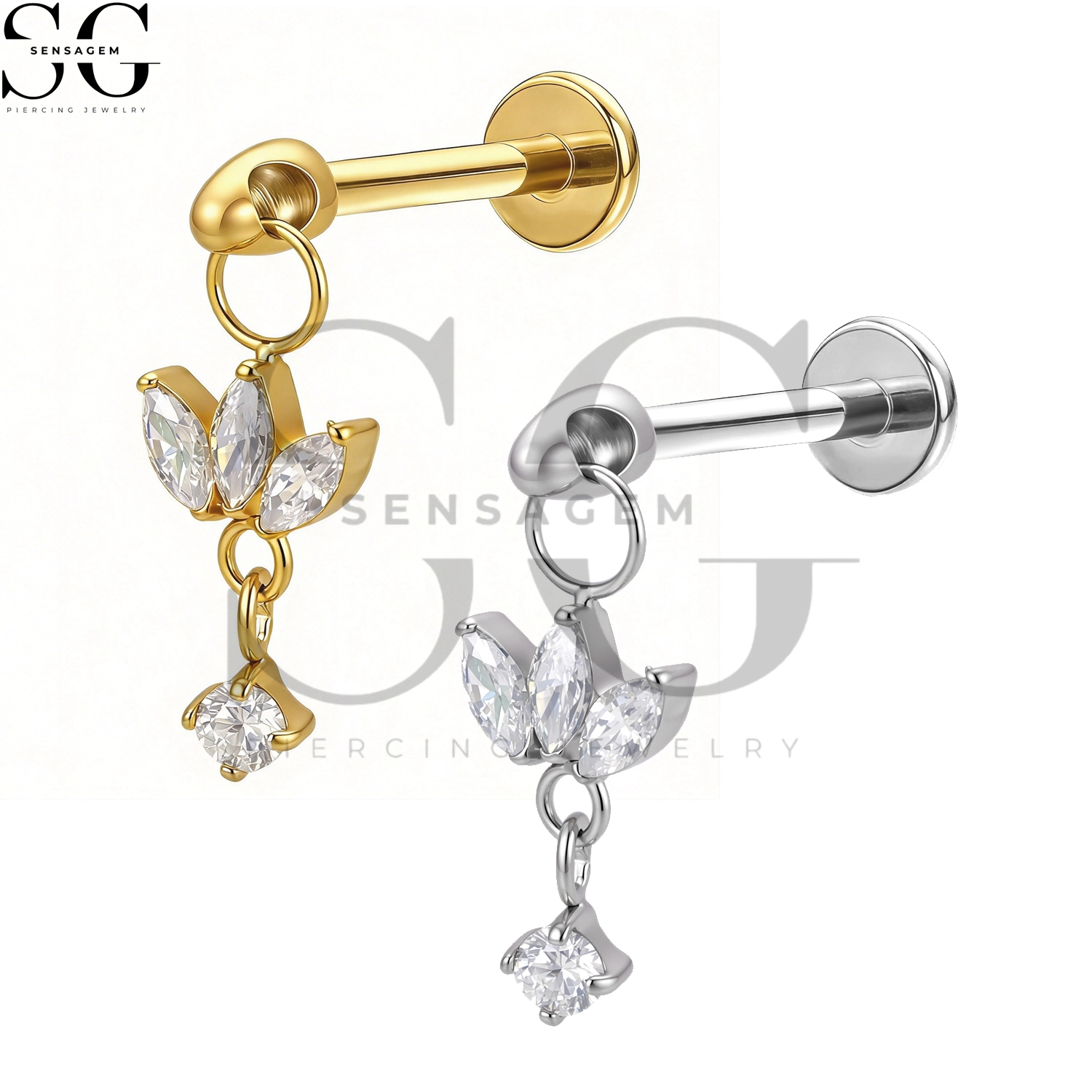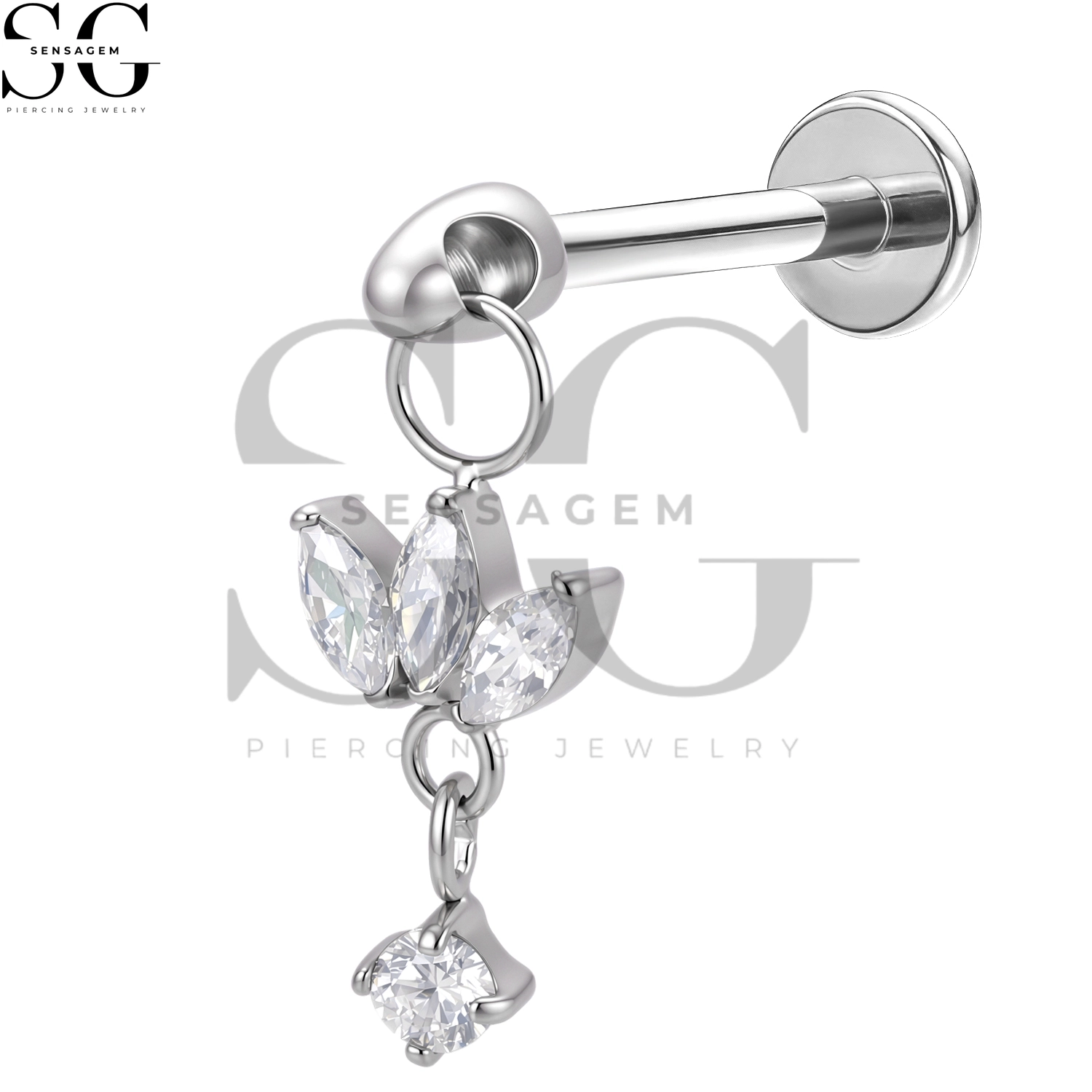 SGYS1292 F136 Titanium Marquise Round CZ Dangle Labret Stud Internally Threaded Piercing Jewelry