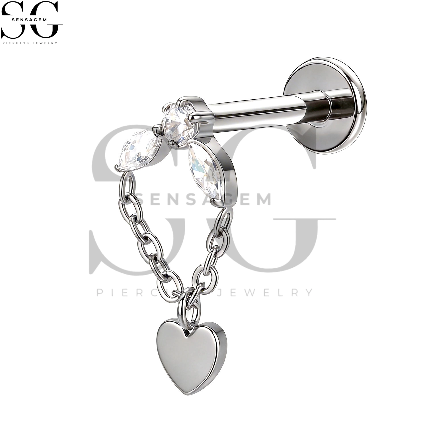 SG4003 implantaatkwaliteit F-136 titanium Pave Heart Labret Stud