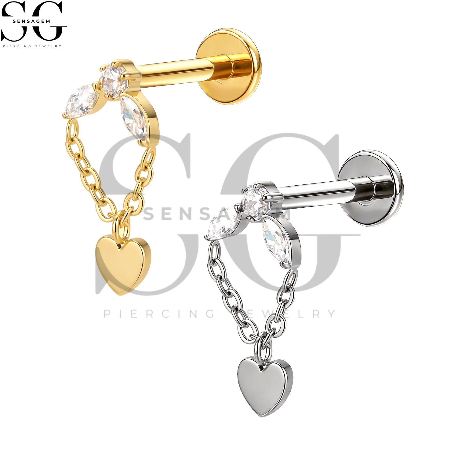 SGYS1295 Wholesale F136 Titanium Marquise Round CZ Moon Dangle Labret Stud Internally Threaded Piercing Jewelry