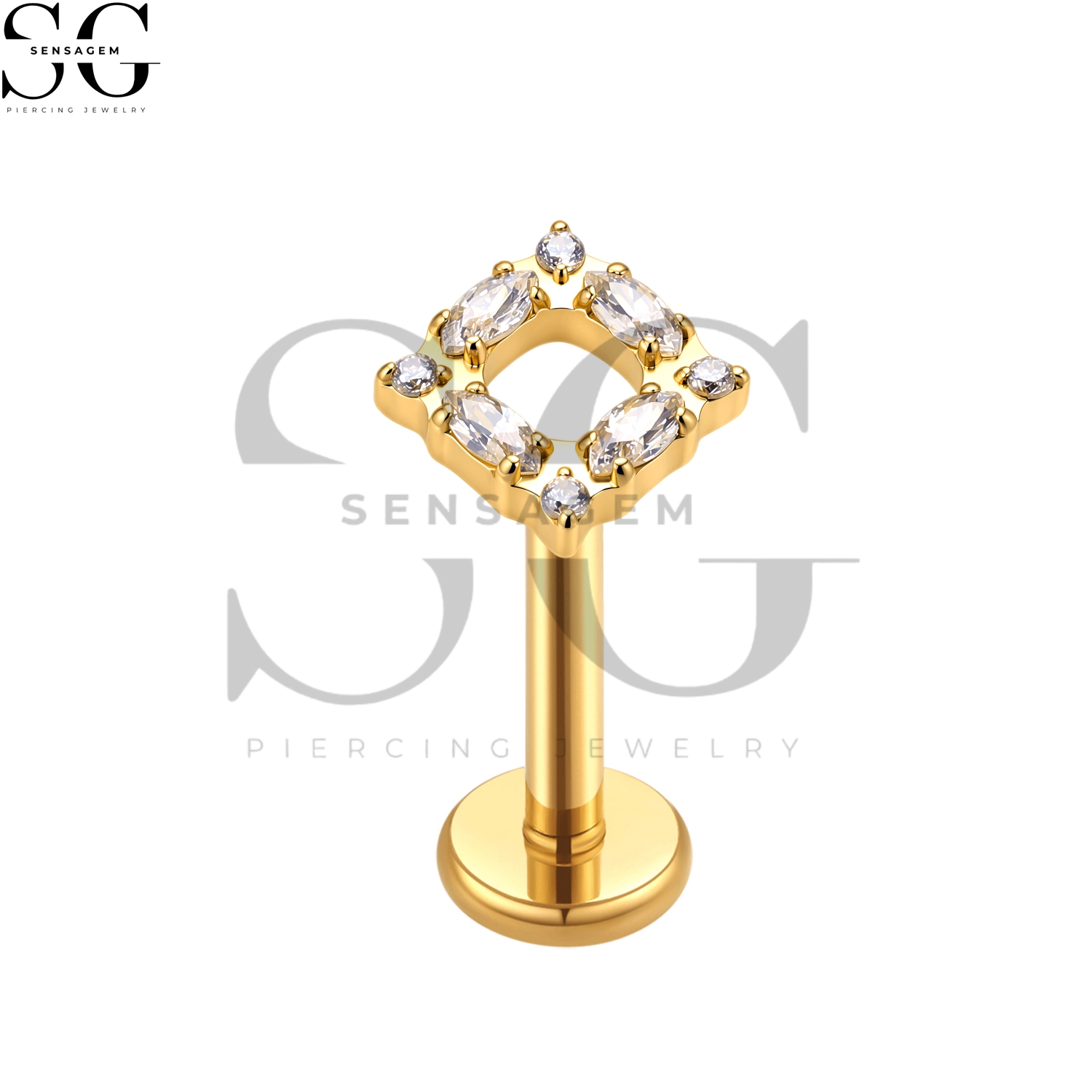 SGYS1304 Wholesale F136 Titanium Hollow Square Marquise CZ Labret Stud Internally Threaded Piercing Jewelry