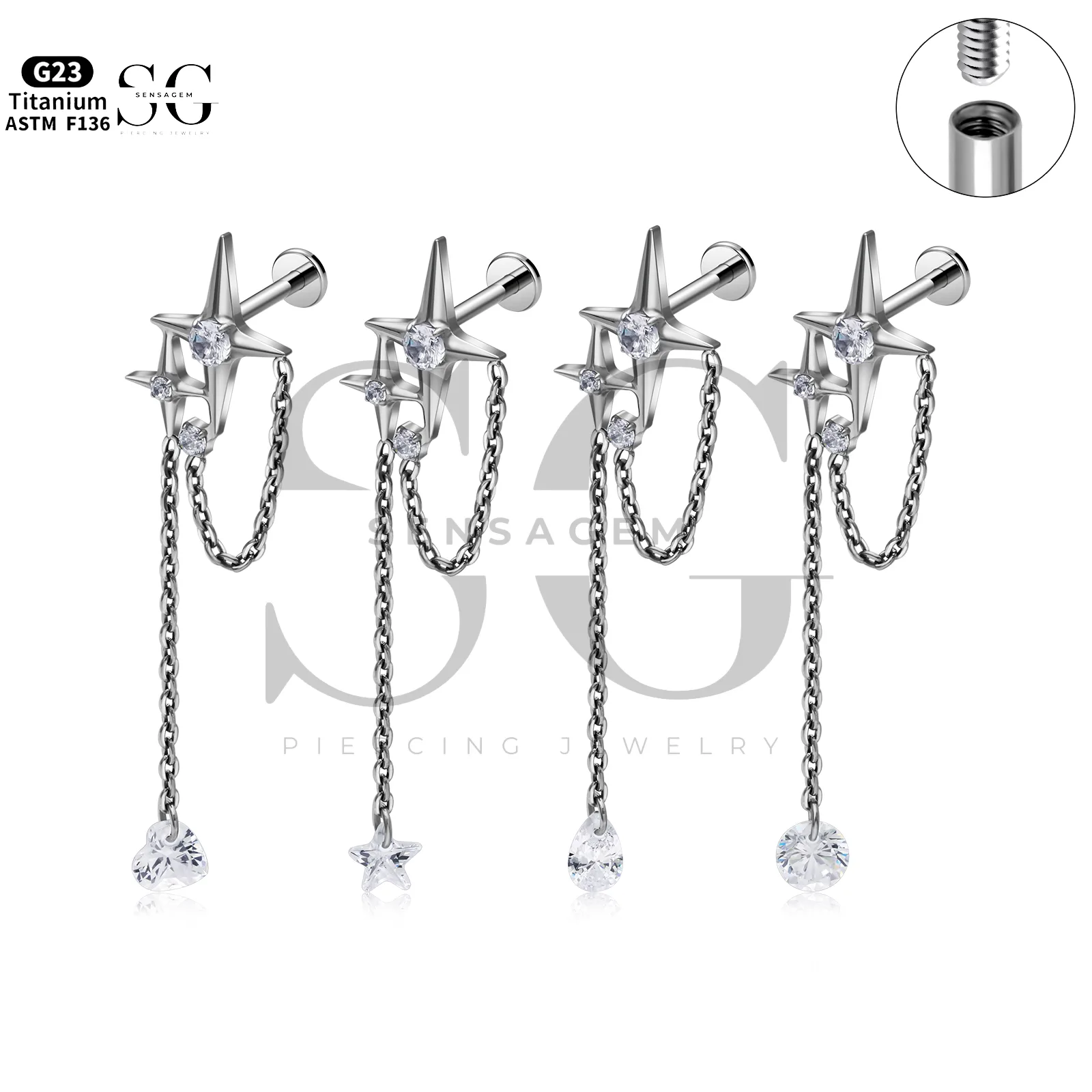 Tags F-136 Titanium Jewelry, In Stock Jewelry (MOQ10pcs), Internally Threaded