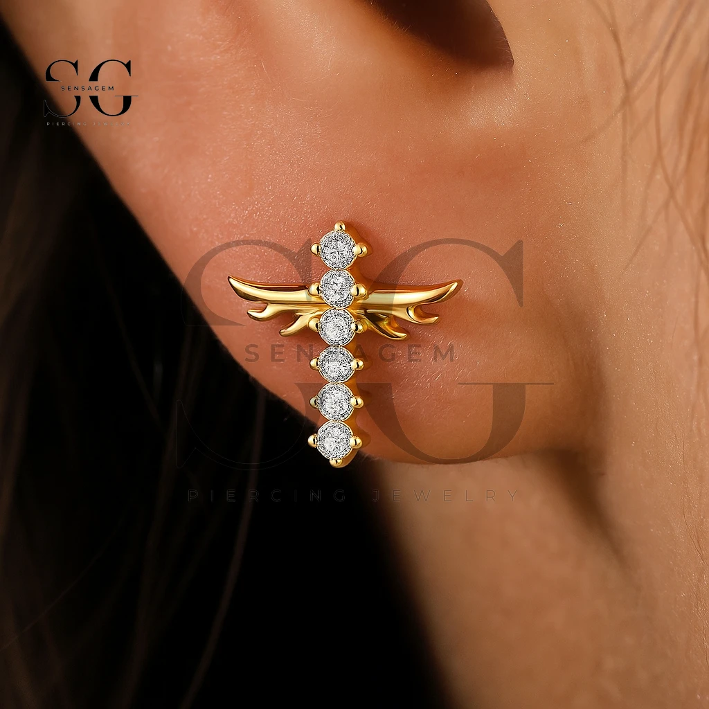 SGYS1116 Implant-Grade Titanium Dagger with Cubic Zirconia Labret