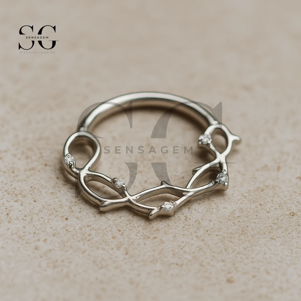 SG3029 PVD Double Side Bar Titanium Hinged Segment Ring With Zircon