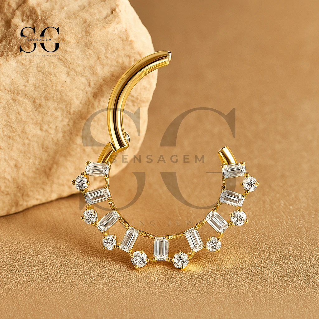 SG3039 PVD Double Side Bar Titanium Hinged Segment Ring With Zircon