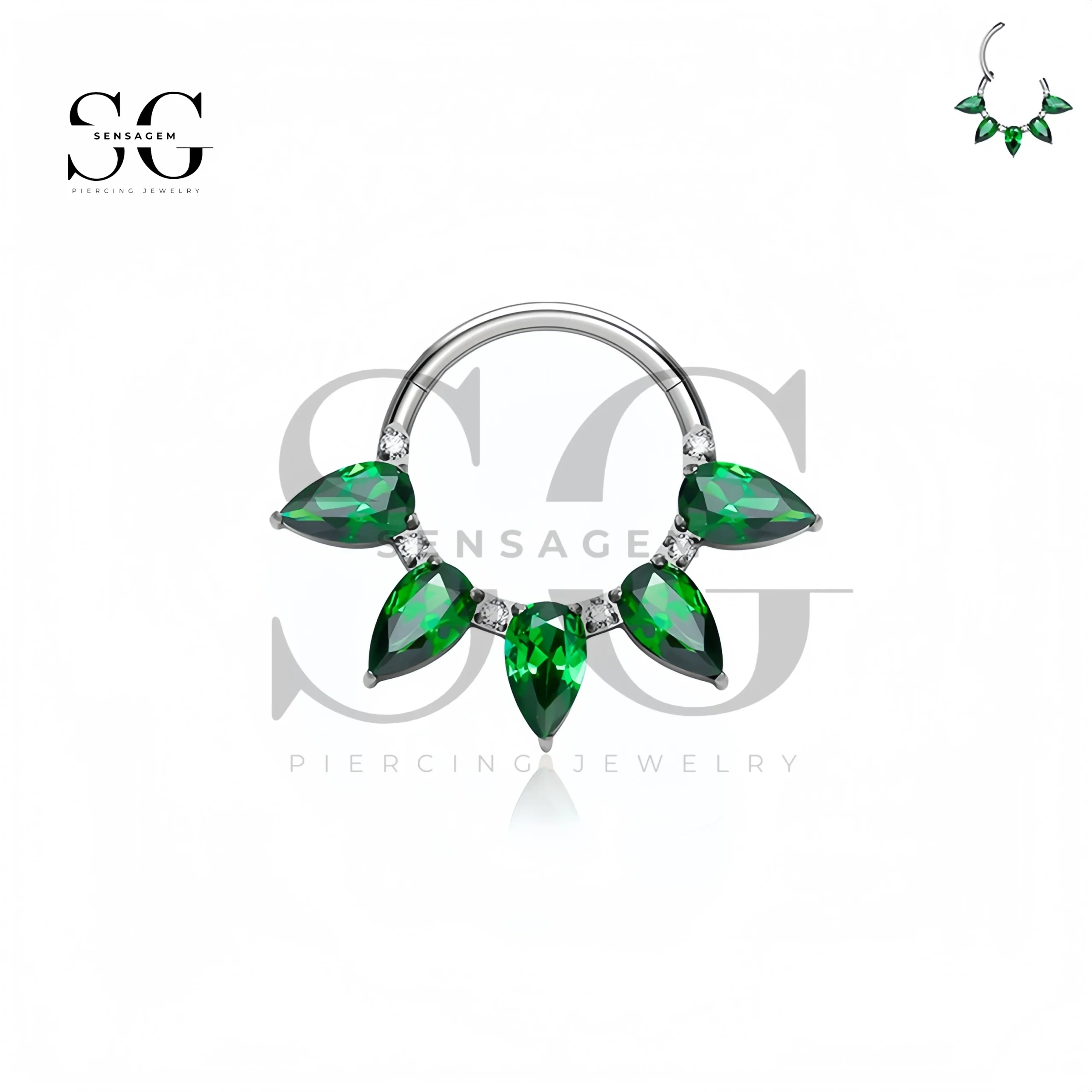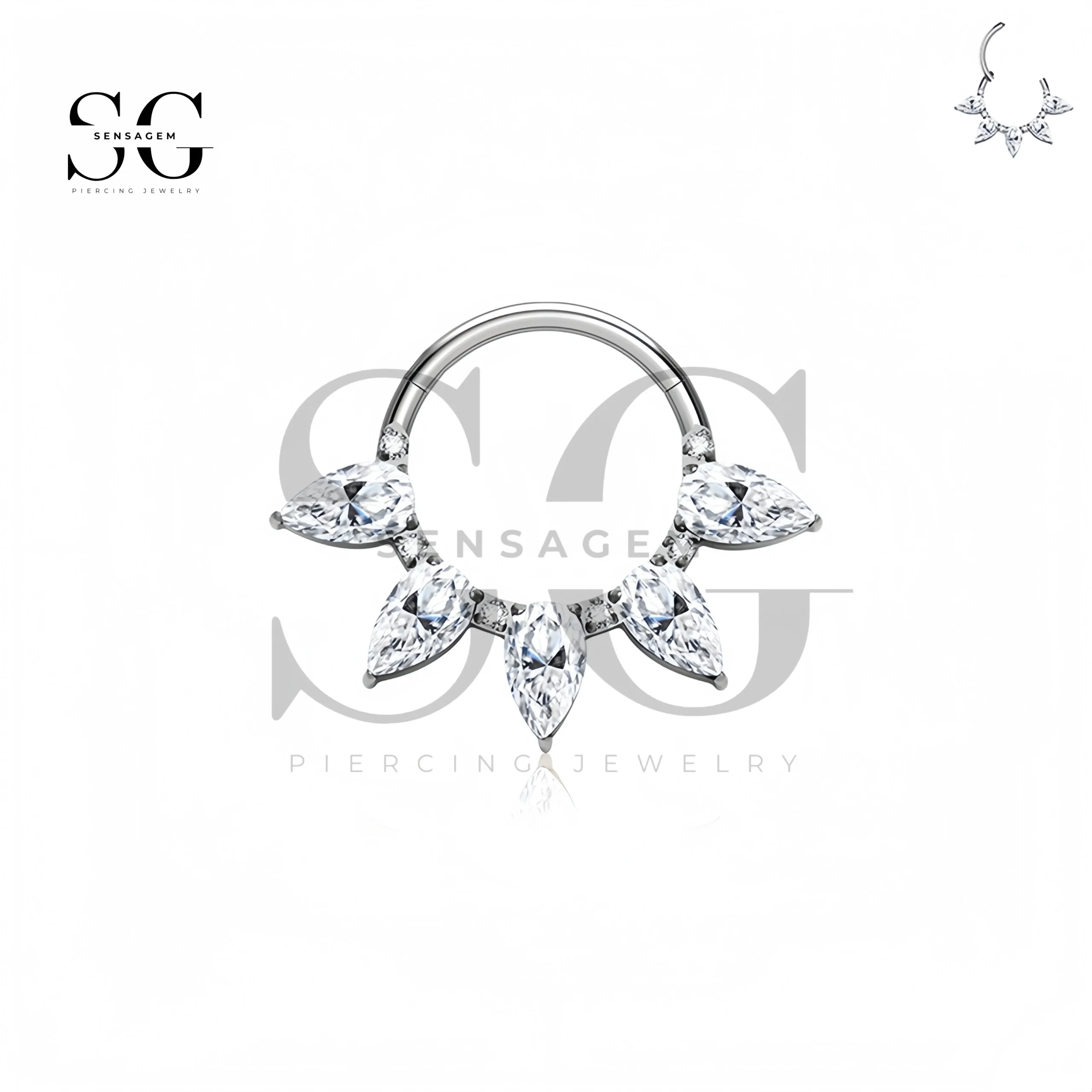 Anel de septo clicker de titânio SG3263 com joias Marquise CZ