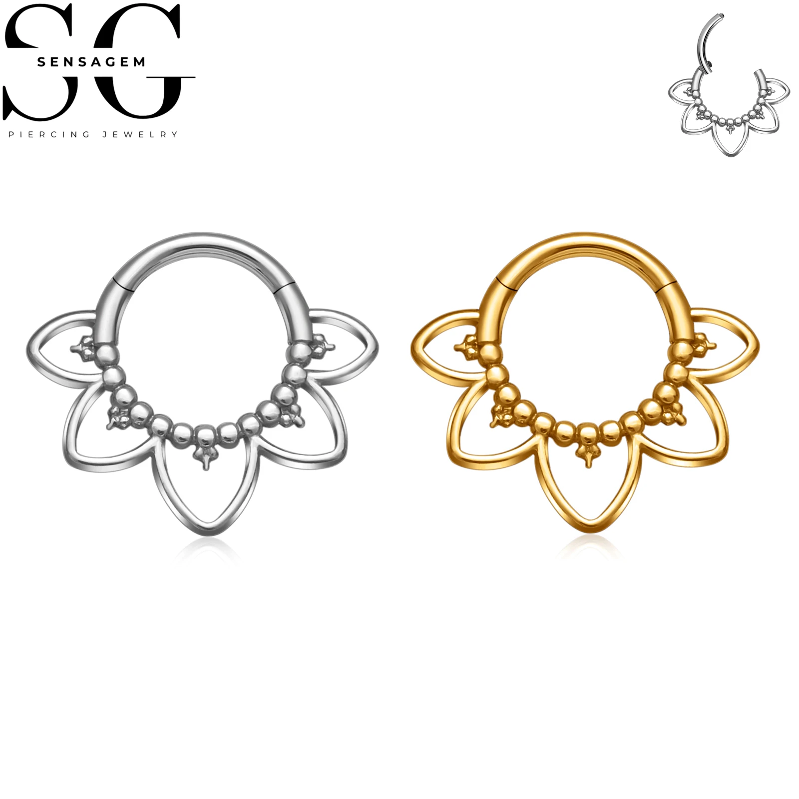 SG3270 F136 Anel Clicker de Flor de Titânio 1.2x8mm Joia Piercing de Septo