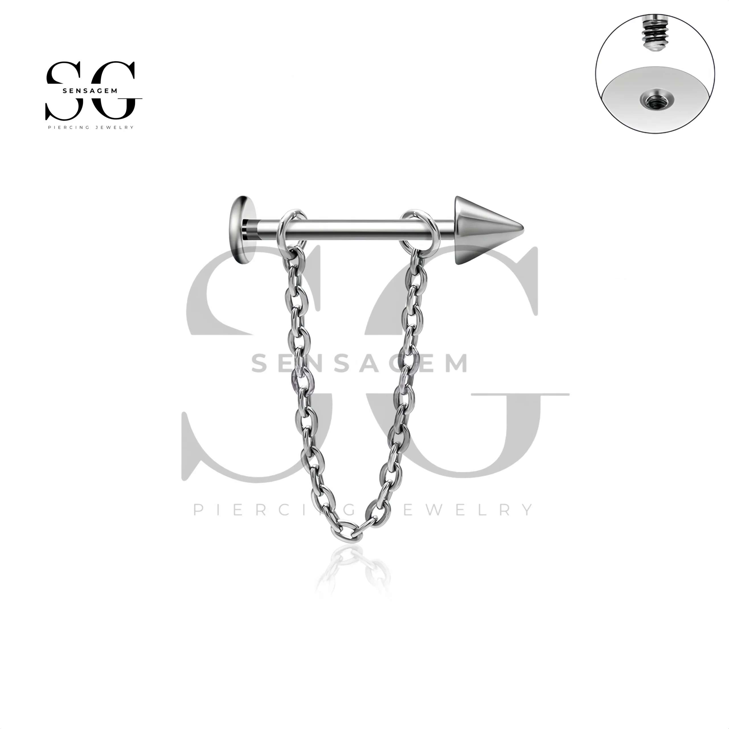 SG4412 Corrente com rosca externa Labret Stud Flat Back Lip Piercing Joia-Cone